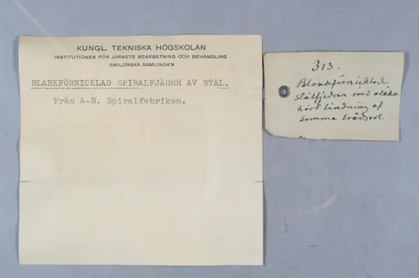 - Detta ingår i en samling prover från KTH som togs emot 1963 men inte katalogiserades. Samlingen består mest av metallprover men det finns även annat material.