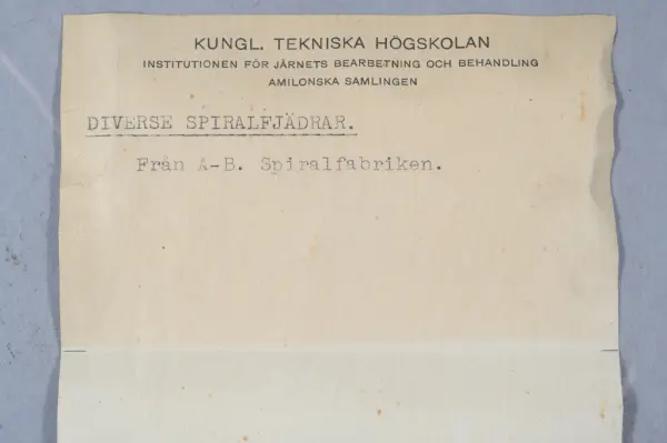- Detta ingår i en samling prover från KTH som togs emot 1963 men inte katalogiserades. Samlingen består mest av metallprover men det finns även annat material.