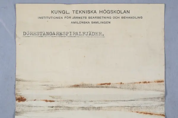 - Detta ingår i en samling prover från KTH som togs emot 1963 men inte katalogiserades. Samlingen består mest av metallprover men det finns även annat material.