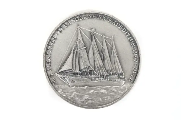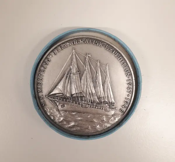 - Medaljen har givits till Dir Erik Theodor Christiansson. Albatrossexpeditionen som pågick mellan 4 juli 1947 och 3 oktober 1948 och var en djuphavsexpedition. Expeditionen anses vara den andra stora svenska forskningsexpeditionen efter Vegaexpeditionen. Genom att Broströmskoncernen lånade ut Albatross så gott som gratis och med hjälp av privata donationer kunde expeditionen finansieras och genomföras. Det nyutvecklade "kullenberglodet" (en kolvprovtagare) användes för att ta upp till 20 m långa sedimentproppar från havsbotten på 7900 m djup, där man tidigare inte trott att liv existerade.