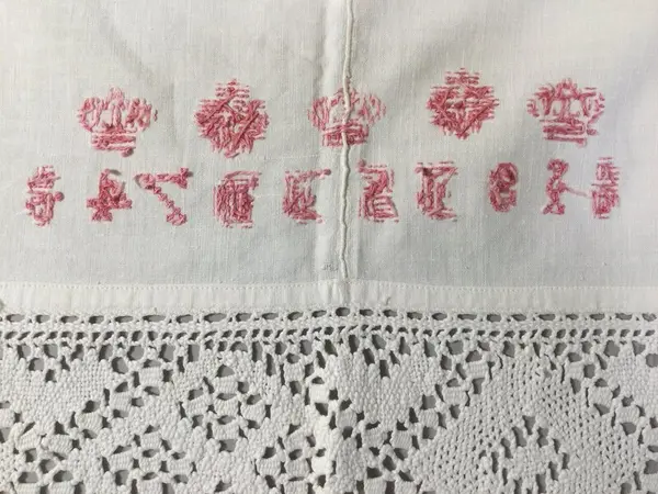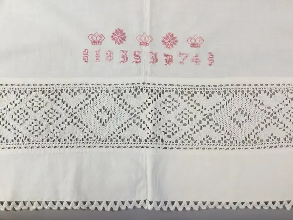 - Överlakan tillverkat 1874 i Delsbo, Hälsingland. Använd fram till 1900-talets mitt av Sigrid Paulsson och hennes familj vid gården Hammaren i Delsbo. Skänkt till Skansen 20/2 2015 av Sigrids barnbarnsbarn, Barbro Tönvik-Askmark.