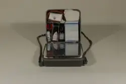 ERRO (Rolf Bølling & Co.) Førstehjelpsveske. Førstehjelps veske har et innebygget speil og inneholder :