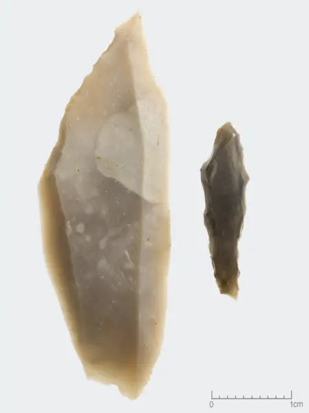 I vestre halvdel av lokalitetsflaten ble det påvist ardspor og dyrkningslag som er radiologisk datert til seinneolitikum. Mot østre utkant av lokalitetsflaten (14-14,5 moh) var det et in situ boplassområde som, på bakgrunn av strandlinje og typologiske og teknologiske trekk ved gjenstandsmaterialet, kan dateres til tidligmesolitikum. Fra boplassområdet området foreligger det en radiokarbondatering til første og en til midtre del av seinmesolitikum. Dateringene korresponderer imidlertid ikke med den typologiske og teknologiske dateringen av det littiske gjenstandsmaterialet som har et enhetlig tidligmesolittisk preg.- funnet avSigrid Alræk Dugstad