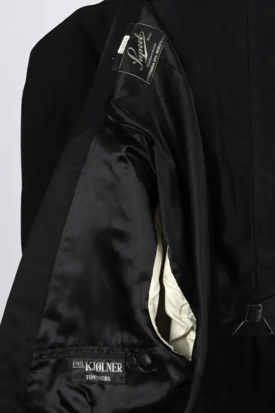 Den er produsert hos Confectionsfabriken Oscar Hanssen - Superb i Molde.Bruk: 1932 (Bryllupet den ble brukt i sto i 1932)