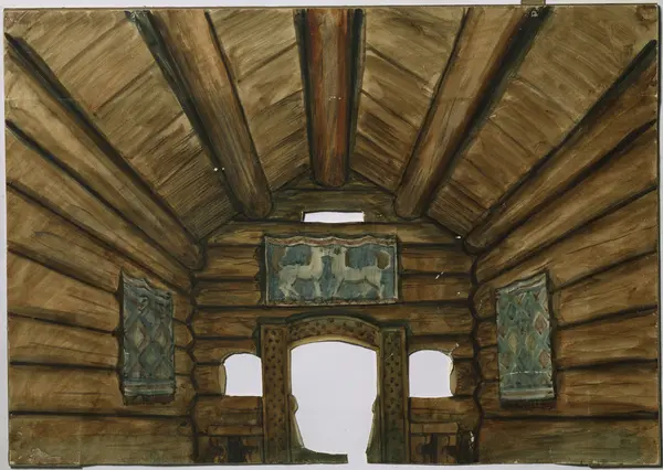 Ofte kjøpte man kulissene og figurene fra en trykker, noen tegnet dem imidlertid selv. Denne kulissen er håndtegnet. Den har tilhørt sønnene til Andreas Hiorth (fra Lysaker), som ga dem et modellteater i 1917, eller deres kusine Inger Johanne Gamnes, som overtok teatret i 1930.