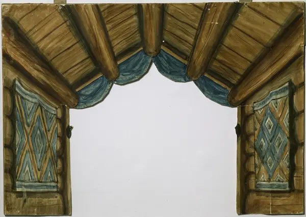 Ofte kjøpte man kulissene og figurene fra en trykker, noen tegnet dem imidlertid selv. Dette mellomteppe er håndtegnet. Det har tilhørt sønnene til Andreas Hiorth (fra Lysaker), som ga dem et modellteater i 1917, eller deres kusine Inger Johanne Gamnes, som overtok teatret i 1930.