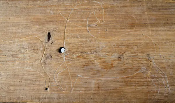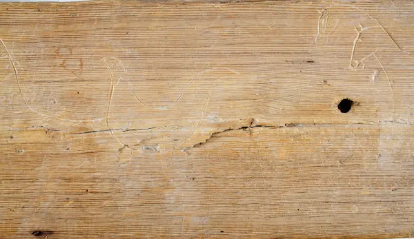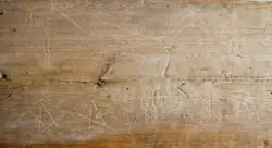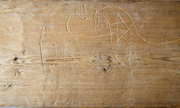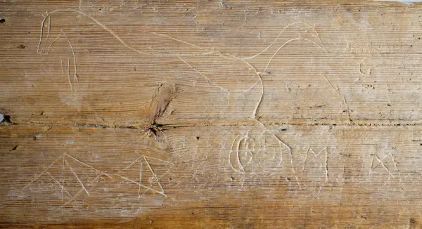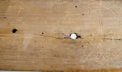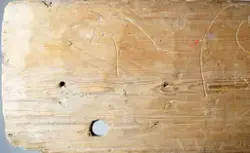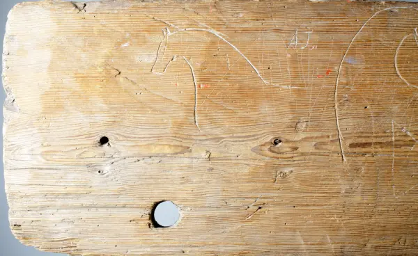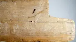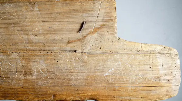 "Trollbräda från Piggamåla, Vislanda socken. Ifrågavarande gård, där brädan suttit, äges av Chaufför Ivar Johansson Nyhem Vederslöv."
