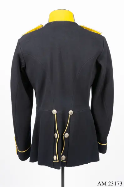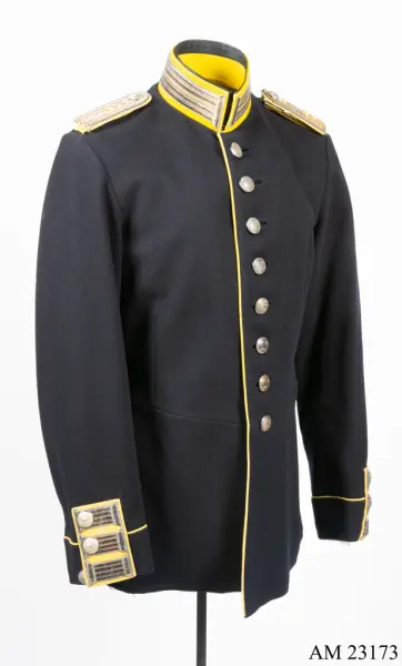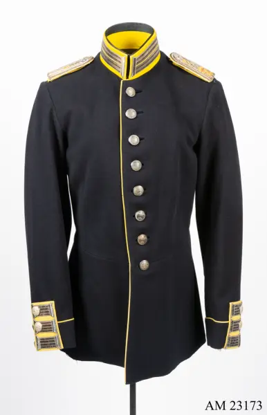 - Ur uniform för kapten vid Svea livgarde, bestående av vapenrock med epåletter och axelklaffar, långbyxor, kask med plym och fodral, sabelkoppel, krage och uppslagsklaffar. Buren av givaren Gyllenram, kapten i Svea livgardes reserv.