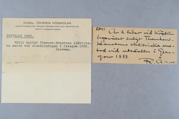 - Detta ingår i en samling prover från KTH som togs emot 1963 men inte katalogiserades. Samlingen består mest av metallprover men det finns även annat material.