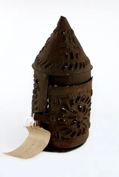 På äldre etikett "nr 5 Ljuslykta av plåt 22/8 28"