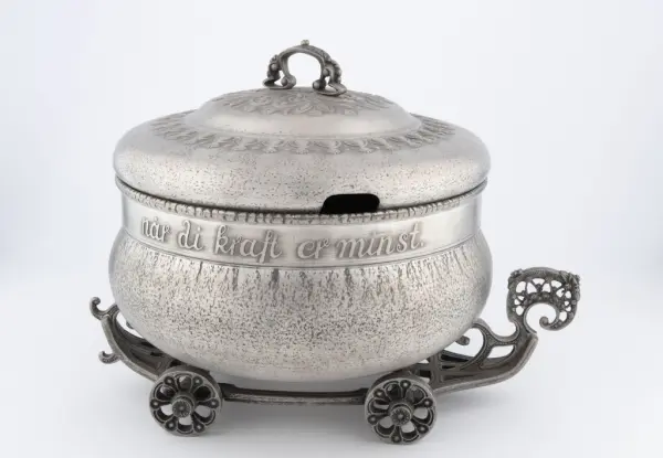 - Terrinen er produsert hos Eik SølvPlett i Tønsberg.