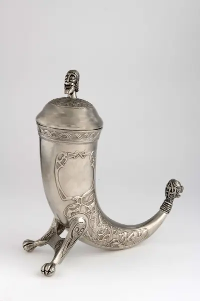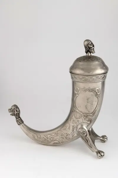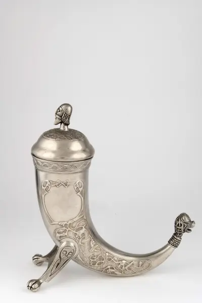 - drikkehornet er produsert hos Eik SølvPlett i Tønsberg.