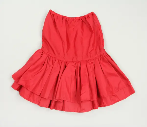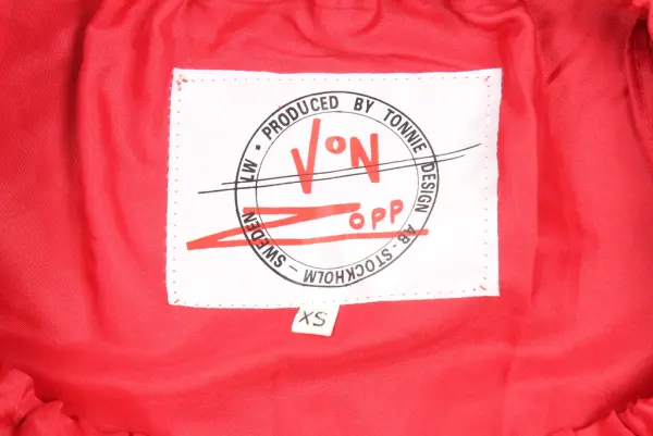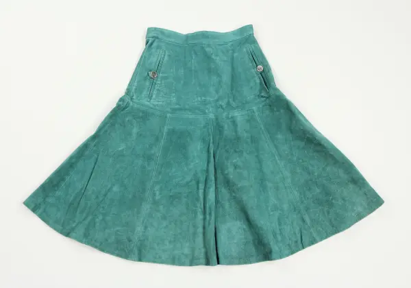 Dräkten bestående av a) kavaj, b) kjol (b) samt c) underkjol ingår i designern Margareta Westbergs senare kollektioner då hon övergått till att designa i läder och skinn under varumärket Tonnie Design (ca 1973 - ca 1990). Dessa kollektioner syddes oftast upp utomlands och var åt det mer exklusiva hållet.