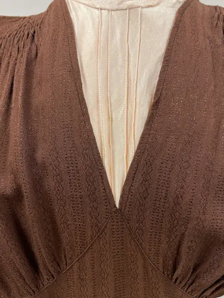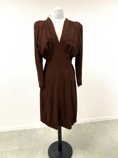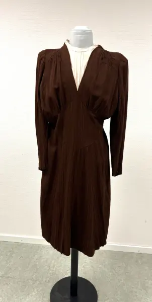 Klänningen har använts av givarens farmor Jenny Gustava Gustavsson (f. Eriksson) i Ängskär, Hållnäs 15/8-190. Hon kom som piga till Hammarviken, Enbo, Hållnäs. Där gifte hon sig 1930 med sonen i huset, Arvid Erik Gustavsson född 29/3-1896 (givarens farfar). Han var fiskare från en familj där det generationer tillbaka levt på fiske och gårdsbruk. Givarens farfar Arvid Erik Gustavsson åkte buss/ lastbil till Gävle och sålde strömming (hans far rodde).