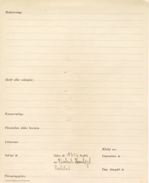 - Part of collection Värmland föremål