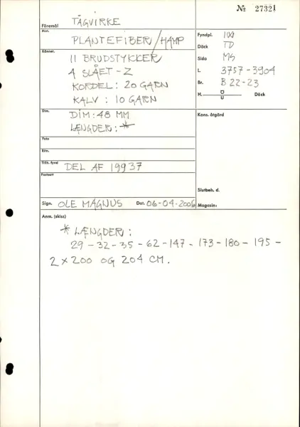 I Vasa, Trossdäck, balk 22-23, center, Längd från för: 37,57-39,04 m- FyndplatsI Vasa, Trossdäck, balk 22-23, center