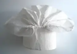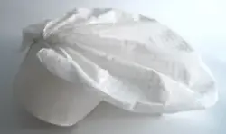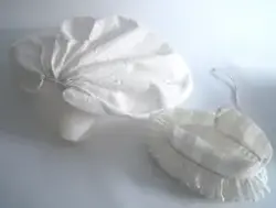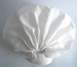 Konehue til folkedrakt frå Sogn. Sydd saman av to rektangulære bomullstykke. Det største stykket er rynka saman i sidene. Det andre stoffstykket er sydd på dei rynka sidene og dannar ein kvarding i framkant av hua. Der hjørnet i det store stykket er rynka saman, dannar det seg to "horn". Hua er trekt saman av ei snor, og er stiv... Konehue til folkedrakt frå Sogn. Sydd saman av to rektangulære bomullstykke. Det største stykket er rynka saman i sidene. Det andre stoffstykket er sydd på dei rynka sidene og dannar ein kvarding i framkant av hua. Der hjørnet i det store stykket er rynka saman, dannar det seg to "horn". Hua er trekt saman av ei snor, og er stiva.