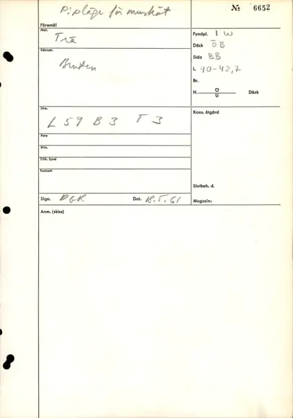 I Vasa, Övre batteridäck, balk 24-26, babord, Längd från för: 4000-4270- FyndplatsI Vasa, Övre batteridäck, balk 24, babord
