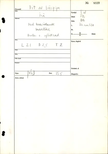- FyndplatsI Vasa, Övre batteridäck, balk 1-2, babord