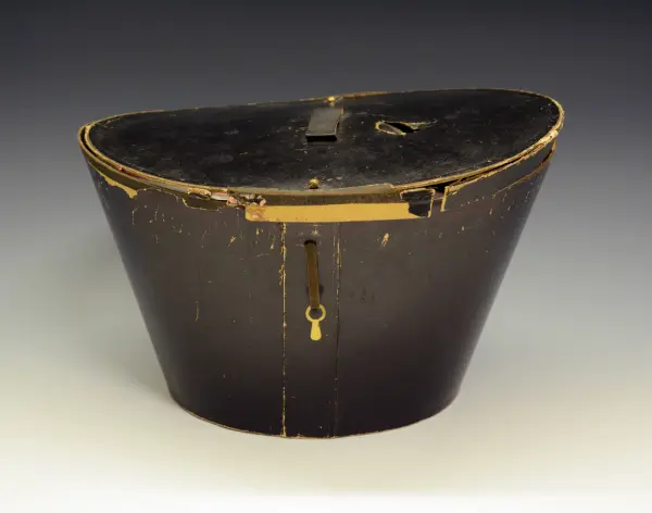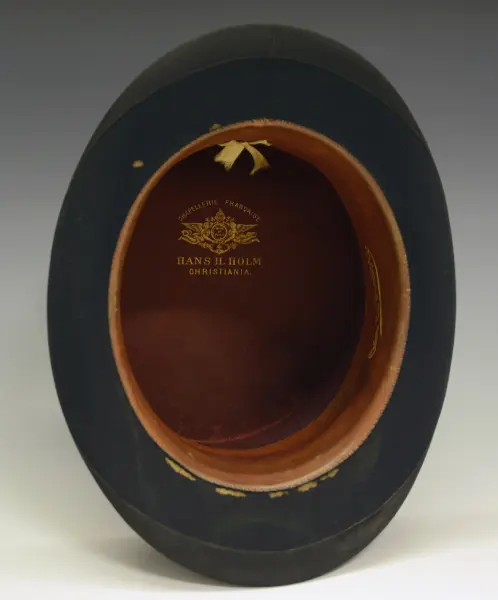 Hatten kom inn til museet i 1955, og ble registrert som en gave fra Hedvig Stouslands stiftelse. Stiftelsen ble opprettet av Carl Stousland, som før sin død i 1941 gav bort huset «Villa Hedvig» i Skien, hvor han selv hadde bodd sammen med søsteren, Anna Stousland, og deres mor, Hedvig Stousland. Den romslige villaen på Falkum skulle brukes som et hvilehjem for ubemidlede kvinner og stå som et minne over hans mor. Hvilehjemmet ble drevet av Røde Kors fra 1955. Fra 1973 ble huset drevet som «eldrepensjonat» av menighetspleien i Skien. Mot slutten av 1980-tallet ble villaen solgt og er i dag en privat bolig.