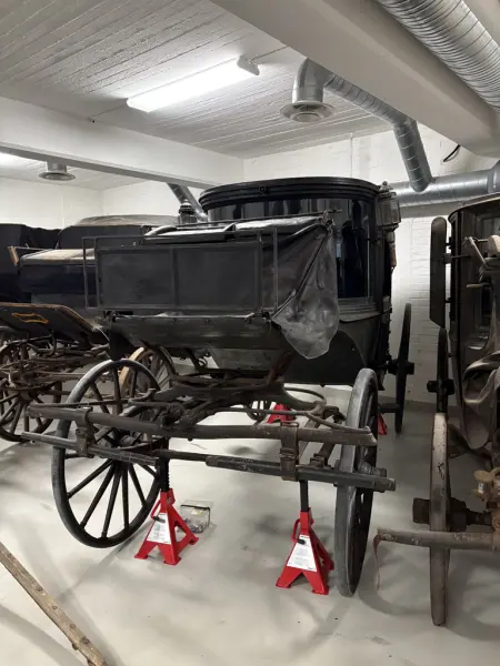 - Inköpt på auktion från Nya Åkeriet AB i karlstad 1933. Detta år sålde Nya Åkeriet ut sina hästdrivna fordon då de cirka 10 år tidigare moderniserat verksamheten och börjat köra sina transporter med motordrivna fordon.