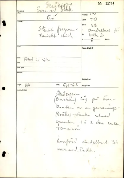 I Vasa, Trossdäck, balk 2, styrbord, Längd från för: 5,19 m- FyndplatsI Vasa, Trossdäck, balk 02, styrbord