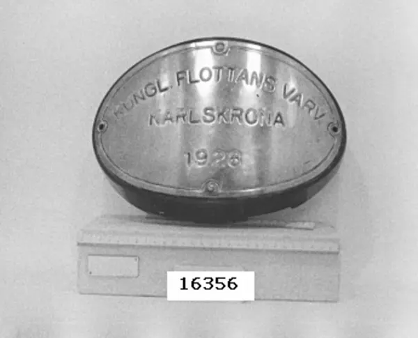 - Tillverkningsskylt för ubåten Gripen, sjösatt 1928. Efter bärgning har skylten varit uppsatt ombord på ubåtsmoderfartyget Patricia fram till dess utrangering.