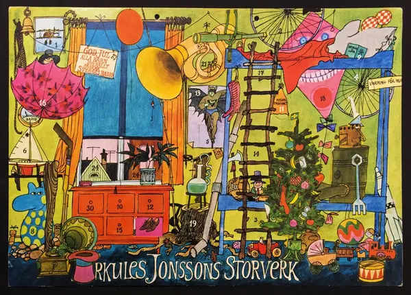 Den här bilden är ett foto föreställande en adventskalender i museets föremålssamling. Vi äger inte rättighet till själva motivet utan bara fotot av föremålet. Bilden finns inte i en högupplöst version.