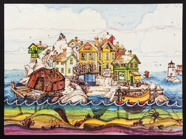 Den här bilden är ett foto föreställande en adventskalender i museets föremålssamling. Vi äger inte rättighet till själva motivet utan bara fotot av föremålet. Bilden finns inte i en högupplöst version.