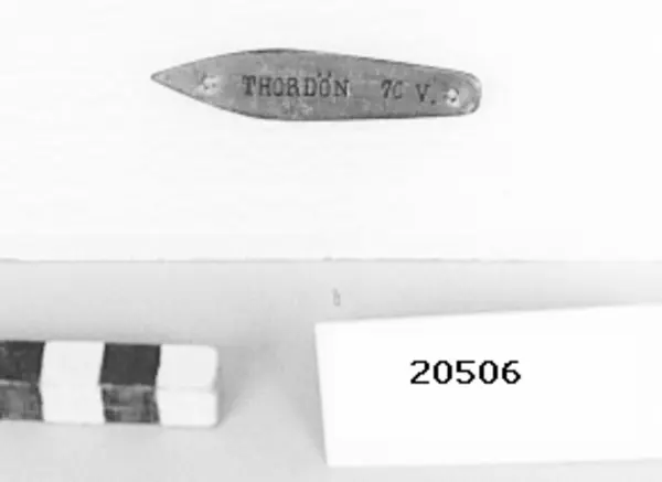 - Användning: Skylten har suttit fästad till karta, förmodligen hos planeringsingenjören eller motsvarande, som visat fartygets placering vid kajen samt vilken spänning i volt som skulle kopplas in.