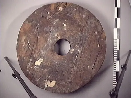 Utgör huvudnummer till lavett-hjul med fyndnr:19734. Tillhörande