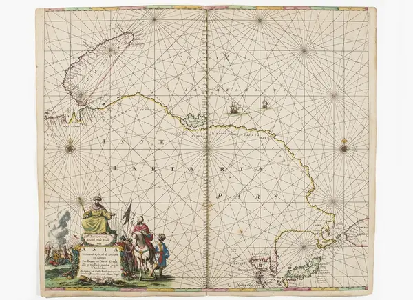 Den holländske kartografen Johannes van Keulens Sjöatlas: De nieuwe groote lichtende Zee-Fakkel.