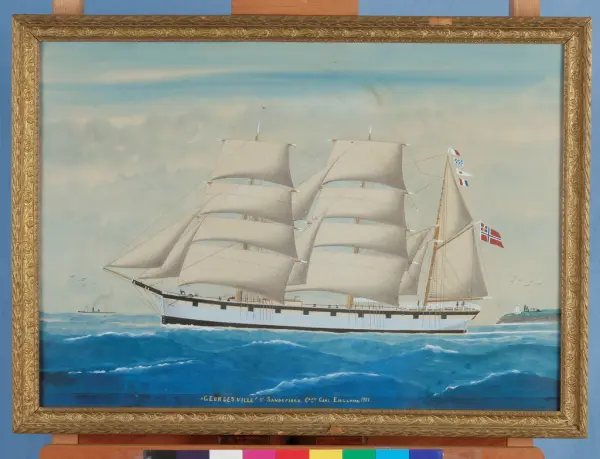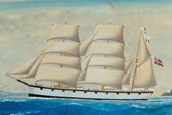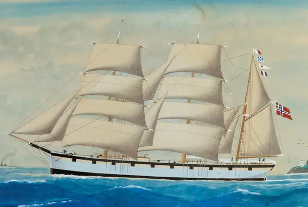 Antatt Torkildsen pga fugleflokk foran og bak skipet. Detet var hans 'varemerke'- KunstnerTorkildsen, H. (1920)antatt sikker