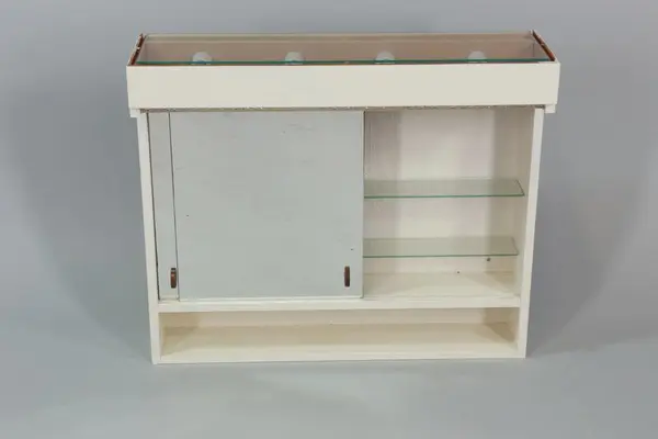 Skåpets tillverkare okänd men inköptes samtidigt som familjen Komarek flyttade in i Täbyvillan 1978. Skåpet har suttit i ett duschrum i en villa i Gribbylundsområdet i Täby dit givarna flyttade 1978 då huset var nyproducerat. Duschrummet där toaletten var placerad är ett bra exempel på färgkoordinerad badrumsinredning från slutet av 1970-talet. Förvärvet kan i framtiden visa på en tidstypisk badrums-inredning från villa uppförd på slutet av 1970-talet. Använd mellan 1978 och 2010.