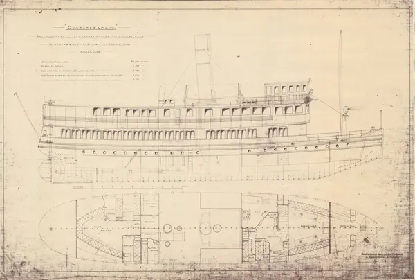 Äldre ritning för ångaren Gustafsberg VII använd inför senare ombyggnation.