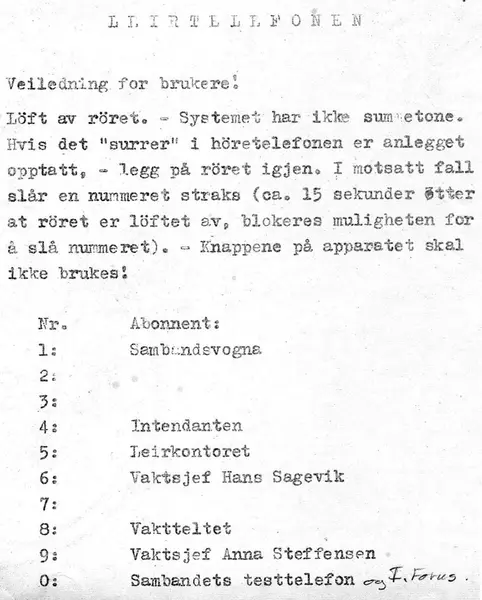 - Telefonsentrale var opprinnelig hussentral for firmaet Svein Kvia i Sandnes. Når dette huset ble revet av det lokale idrettslaget fikk Steinar S Aasland kjøpt den av idrettslaget. den ble så montert i en egen vogn så den kunne transporteres. Ble da brukt som leirtelefon ved to kretsleirer i speideren.