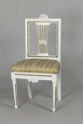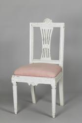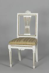 - Soffan är tillverkad på 1780-1790-talet. Möbelgruppen har enligt uppgift 1937 av fru Karin Elmér, Kalmar, tillhört länsveterinär Odén i Kalmar. Vid auktion efter denne inköptes soffan av familjen Sundberg och stod därefter i det Sundbergska hemmet Carlsberg i Kalmar. Ursprungligen deponerad 4/6 1934 av ryttmästare Arvid Rhodin, Erik Dahlbergs väg, Stockholm, ändrad till gåva enligt gåvobrev 11/12 1934. Stolarna ingår i en möbelgrupp tillsammans med en soffa, KLM 12727:1.