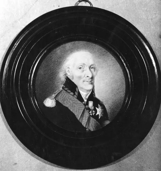 Skeppsbyggmästaren och viceamiralen Fredik Henrik af Chapman vid dryga 87 års ålder. Iförd viceamiralsuniform av 1801-års modell (utnämningen fick han 1791) i blått kläde med högkr...