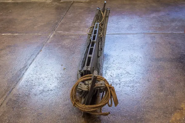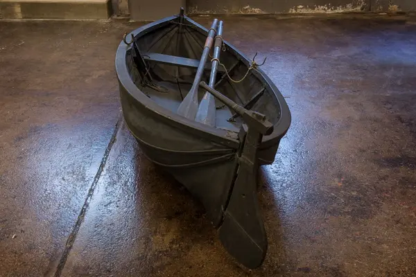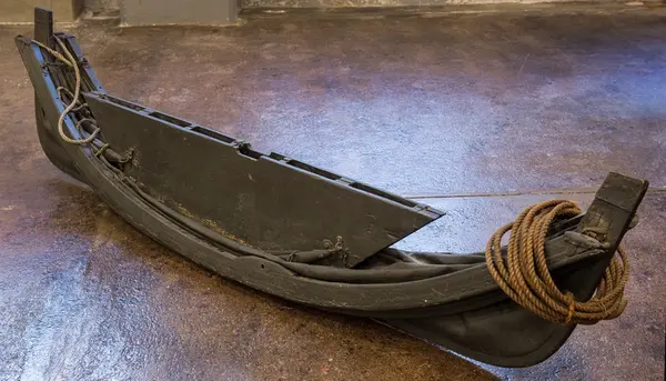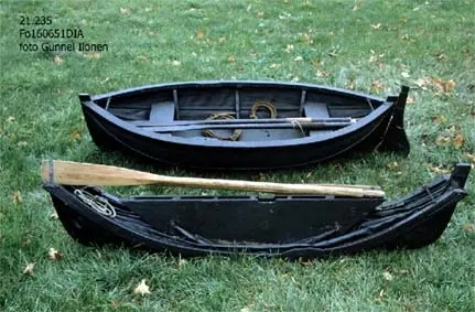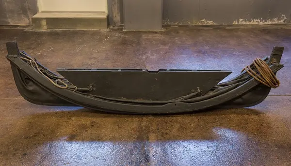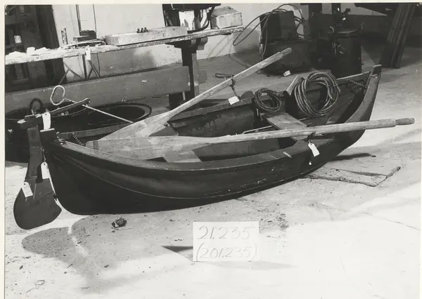 Ihopfällbar jolle för ubåten HVALEN, byggd 1909 i La Spezia, Italien. HVALEN var Svenska flottans andra ubåt och den enda (förutom miniubåten SPIGGEN) som byggts utomlands. HVALEN fördes av sin första besättning på egen köl från Italien och hem till Sverige. Resan var strapatsrik och blev uppmärksammad i hela Europa. Hvalens resa var då den längsta som en ubåt gjort på egen köl. Denna jolle förmodas ha funnits med ombord. HVALEN utrangerades redan efter 10 års tjänst år 1919. Gåva 1966 av Stockholms Örlogsvarv.