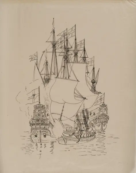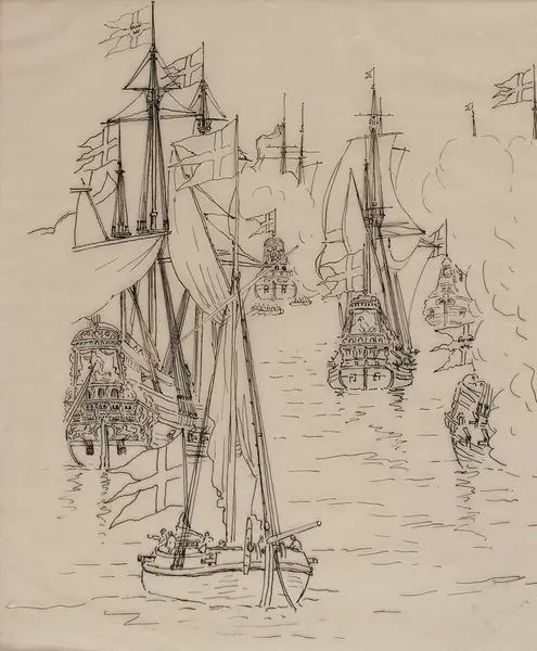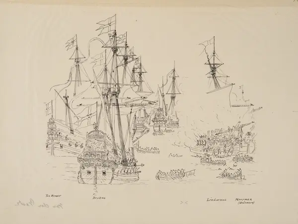 - Jacob Hägg har gjort kalkeringar efter van de Velde (troligen van de Velde den äldre eftersom slaget vid Femern ägde rum 1644).