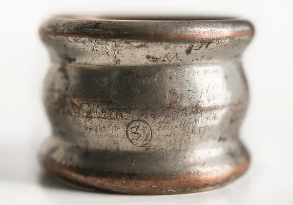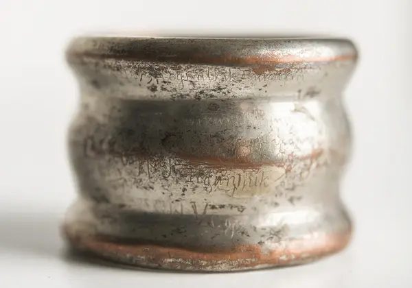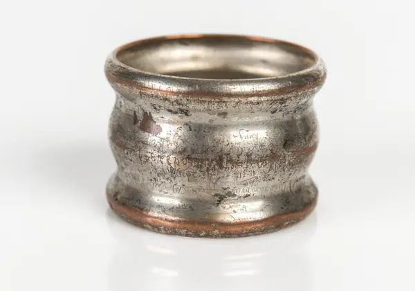 - Servettringen har tillhört Louis Palander och av honom använts ombord på Vega under Nordostpassagen. Ringen full med ojämna, nu svårläsliga inskriptioner bland annat: "Store man hvarför grälar du? Okt. 18de 1878." liksom "Vega lämnar Pitlekej 16 juli 1879" samt namn på besökta hamnar.