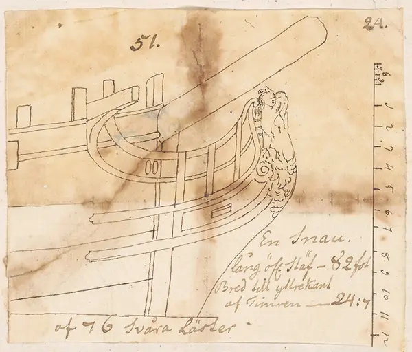 Enligt Fredrik Neumeyer gjordes en del av skisserna i Hammerska samlingen som förlagor till planscher i Architectura Navalis Mercatoria från 1768.- KonstnärChapman, Fredrik Henrik af (1721 - 1808)