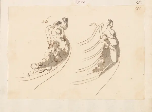 Enligt Fredrik Neumeyer gjordes en del av skisserna i Hammerska samlingen som förlagor till planscher i Architectura Navalis Mercatoria från 1768.- KonstnärChapman, Fredrik Henrik af (1721 - 1808)