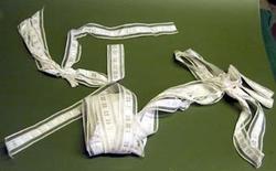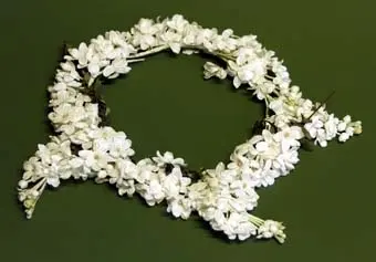 3) Band; Två rosetter gjordes av vit silkesband. Bandet satt i brudbuketten.