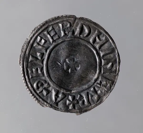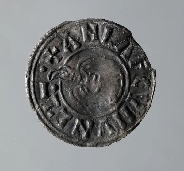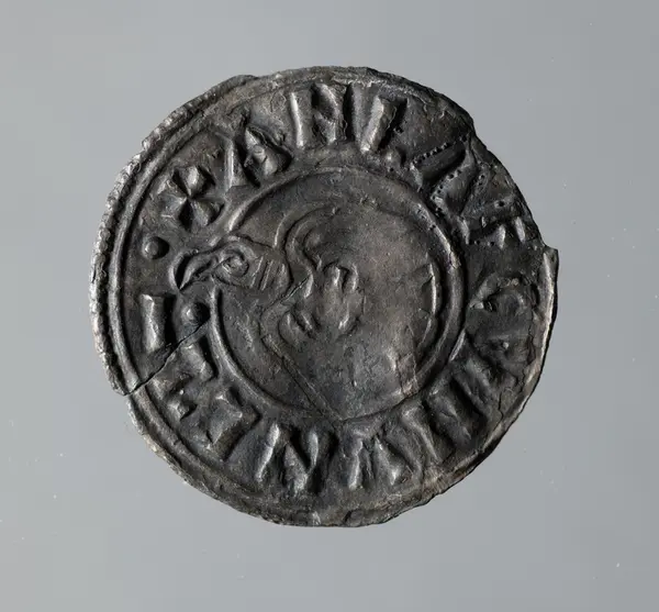Mynt "Anlafmyntet"Silvermynt. Norskt-iriskt/DanelagenAnlaf Guthfrithsson 939-941 York Athelferd.Från Närke, Edsbergs socken, Kvisserud, Eketorp. Publ. Alstentun, R., Vad kraxar korpen. Från Bergslag och Bondebygd 1998. Utställda på Länsmuseet, Klenodkammaren 18/6 2000.Digital bild finns på CD 8 och 9.