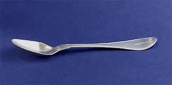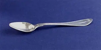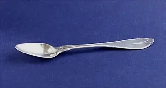 Skedar, 12 stycken. Silverskedar av närmast gammalsvensk modell tillverkade av Carl Gustaf Holmberg, mästare i Nora 1796-1820. Märkta med ägareinitialer på skaftets baksida: JEAS och därunder ES. Varje sekd har tre stämplar: Nora Stadstämpel, kontrollstämpeln med tre kronor och Holmbergs mästarstämpel. Mycket odyldiga stämplar.2. 19 g3. 18,5 g4. 18 g5. 18,5 g6. 20,5 g7. 17 g8. 18,5 g9. 18,5 g10. 19 g11. 19,5 g12. 19,5 gNeg.nr.6181/79, 6182/79, 6185/79Utställt på Länsmuseet, Klenodkammaren 2000-06-18(2 stycken, resten magasinerat LM)