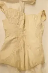 Snörliv av vitt linne. Utan fjädrar, mjuk och ganska rak modell. kanal på framsidan.