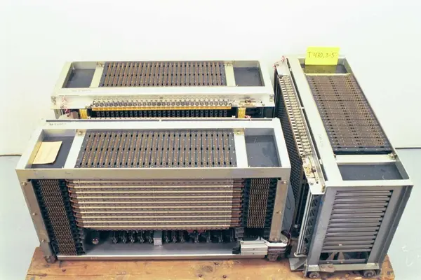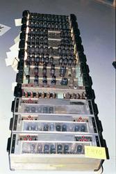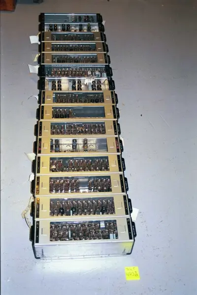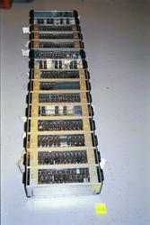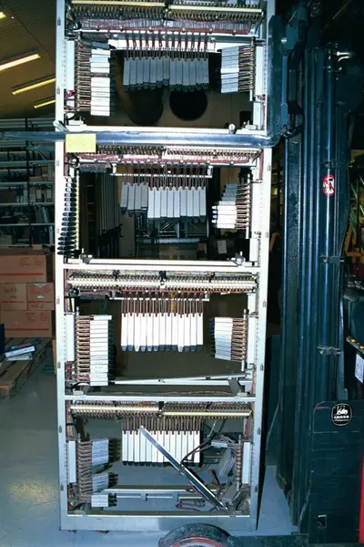 Sentralen består av 2 stativer, 4 velgere, radiorør, strømløp og tellere.