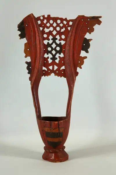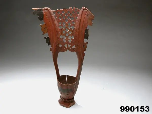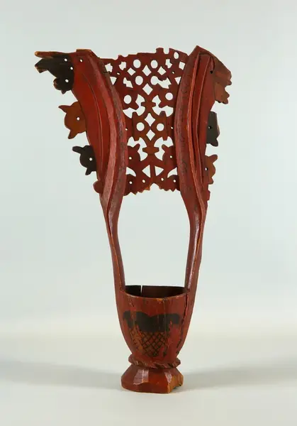 Kåsa av gran, rödmålad, omkr. 1590 (Cleve). Med Bielkes och Stures vapen (Hogenskild Bielke och Anna Sture, gifta 1569). Med ornament i svart färg. Se N. Cleve i Fataburen 1965 sid 21 och 29). Dep. Statens Historiska Museum 5.11.1915."