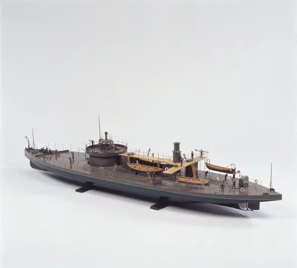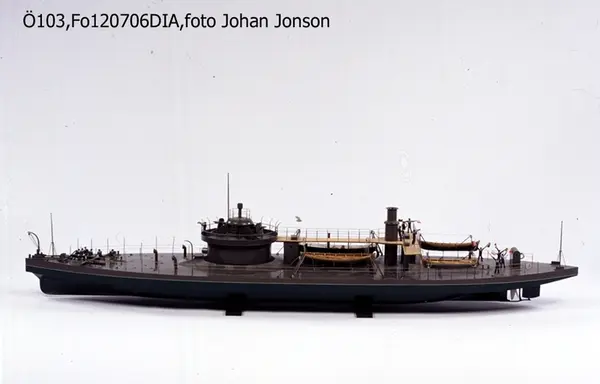 - Tillverkad vid ingenjörsdepartementet på Stockholms örlogsvarv för att ställas ut i Flottans paviljong på Allmänna konst- och industriutställningen i Stockholm 1897. Modellen färdigställd 1907 av marindirektör H. Åkermark. Tillverkningskostnad 1 200 kr.